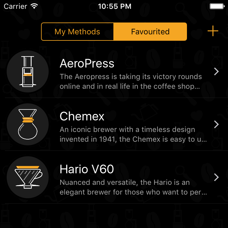 Whether you use Hario V60, Aeropress or even Eva-Solo, we've got this covered. Our app has guides for most popular coffee makers, alternatively you can share your own brewing method with friends or publish it online!